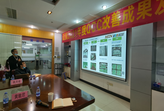 本次成果發布會共收集了20份優秀改善案例,經過前期嚴格篩選,最終評選出10份報告及一個IT地圖成果展示入圍成果發布會。內容涵蓋產品良率提升、產品異常改善、產能效率提升等主題。活動過程中,工廠QCC活動的組長喻主管向與會人員介紹了2021年QCC工作的推行情況,并對本次QCC的評比細則進行了詳細解讀。隨后,圈組代表們也對各自的項目進行了分享。