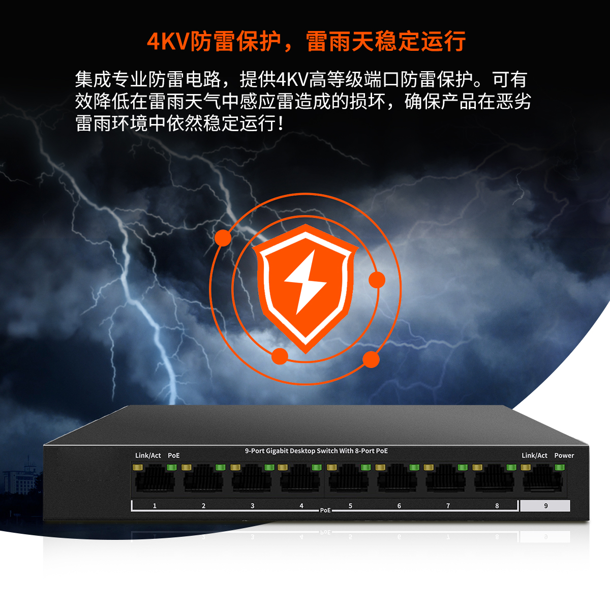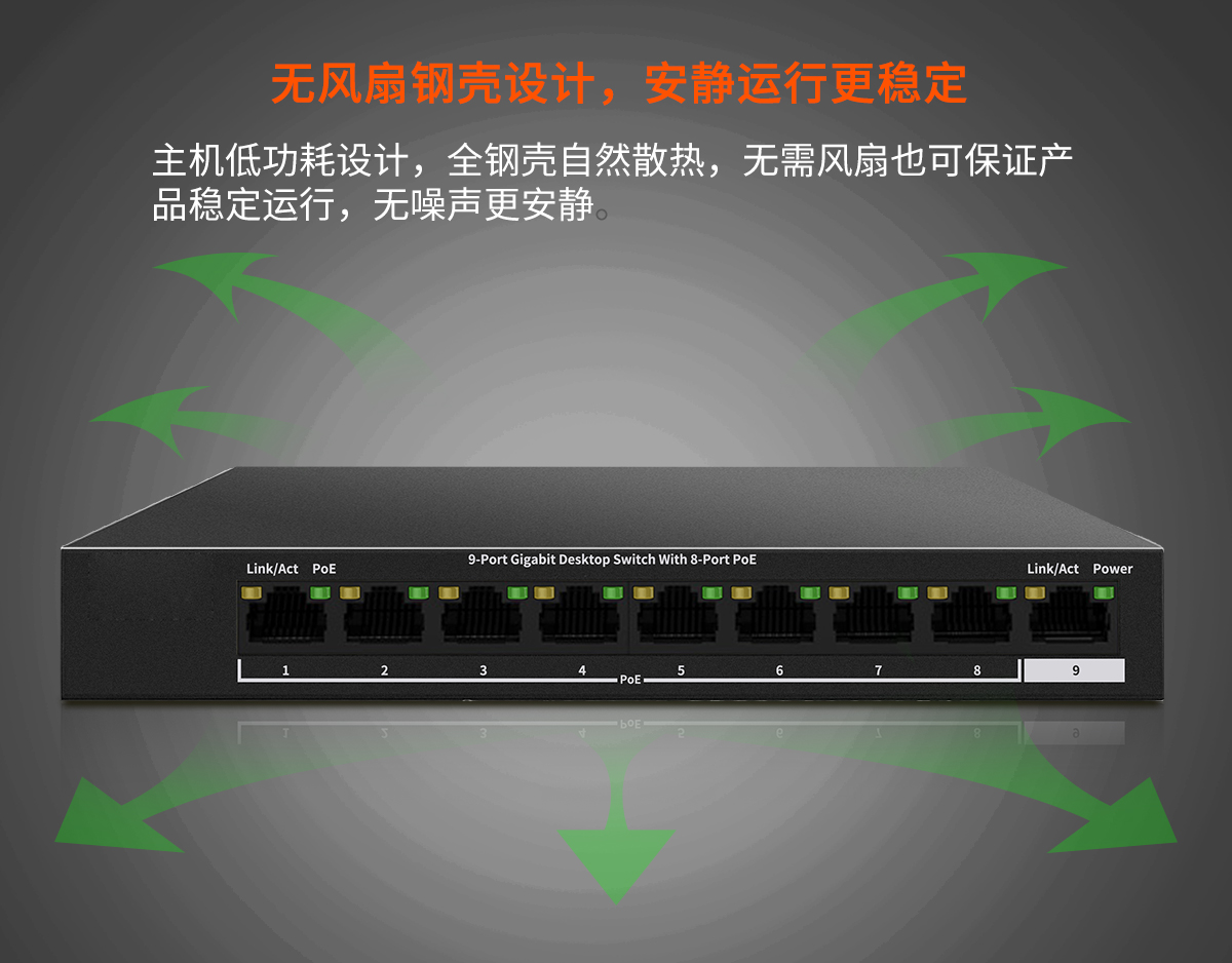 品名:9口千兆8口POE供電交換機(jī)
