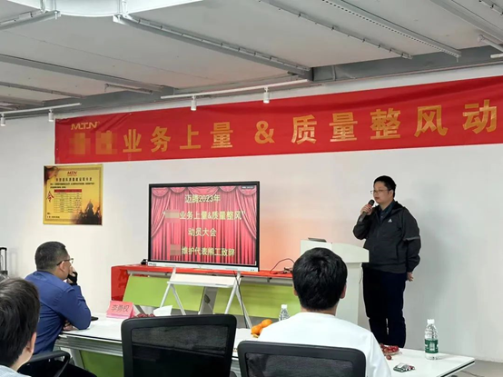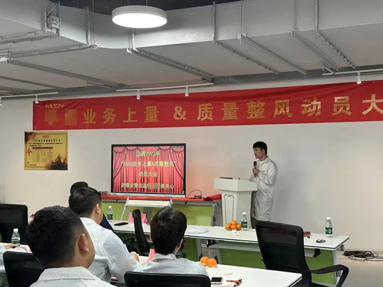 質量推進組成員,通過產品質量知識、活動說明、質量之思三個方面進行“質量季”主題活動宣講。動員邁騰電子全員參與,全員行動,把好每一道質量關。