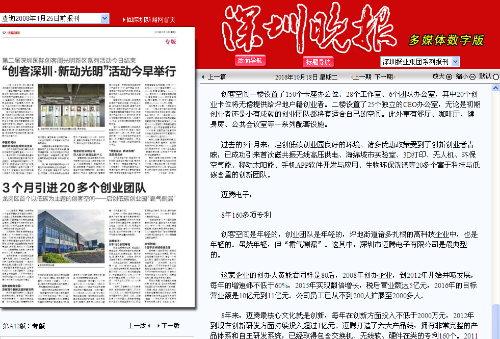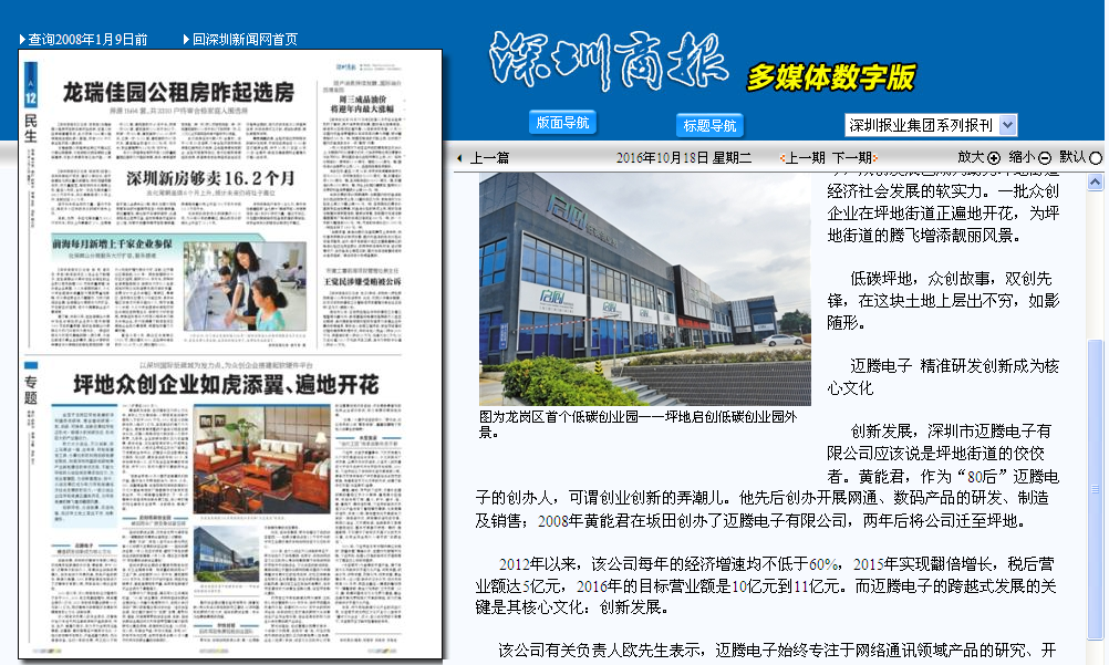 創新發展,深圳市邁騰電子有限公司應該說是坪地街道的佼佼者。黃能君,作為“80后”邁騰電子的創辦人,可謂創業創新的弄潮兒。他先后創辦開展網通、數碼產品的研發、制造及銷售;2008年黃能君在坂田創辦了邁騰電子有限公司,兩年后將公司遷至坪地。