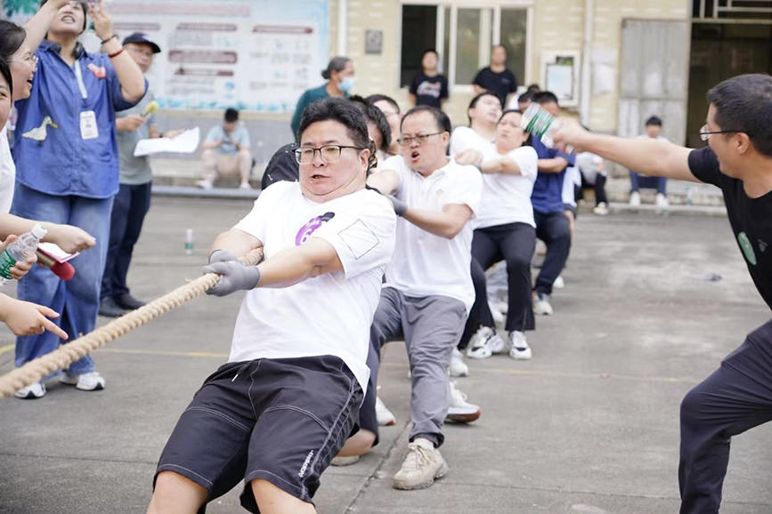 運(yùn)動(dòng)健兒們熱情高漲、摩拳擦掌、蓄勢(shì)待發(fā),“三二一”隨著裁判哨聲?shū)Q起,賽場(chǎng)上,大家以團(tuán)隊(duì)為單位,雙手緊緊抓繩往后拉,每一位隊(duì)員都鉚足了勁,一條心,一個(gè)方向,朝著一個(gè)目標(biāo)奮斗。比賽結(jié)束,不論勝負(fù),均收獲連連掌聲。