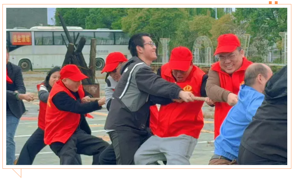 當哨聲吹響,參賽隊員們立刻扎穩馬步、緊握長繩,紅綢帶在中間來回拉扯。場邊隊友們的加油吶喊聲此起彼伏,震徹園區每一個角落,這一刻,每個人都為了團隊榮譽拼盡全力,擰成一股繩的凝聚力格外動人!